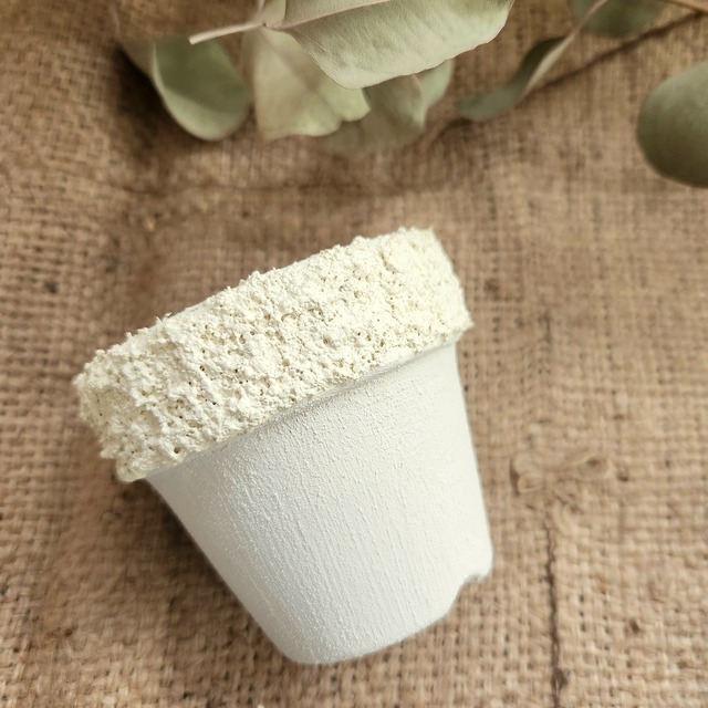 2.5号素焼き鉢(日本製)にやすりがけし PREMIUMMORUMORUを塗っています。 刷毛でオーソドックスに仕上げています。 面倒な下処理は全て仕上がった状態!! この上から、色でペイントするだけで 簡単にリメイク鉢ができます。 このまま白のリメ鉢としても使えます。 こんなメリットが!! ☆リメ鉢作りの時短になり作業効率がUP! ☆少し作りたい時にテクスチャーペイントが 無駄にならない ☆テクスチャーペイントを使ったことがない人には テクスチャーペイントの見本になるよ ※一つ一つ手塗りで塗っています 塗り方や仕上がりの誤差がありますので ご了承くださいませ ※日本製の素焼き鉢を使用してます 底穴や仕上がりに誤差がありますので ご了承お願いいたします